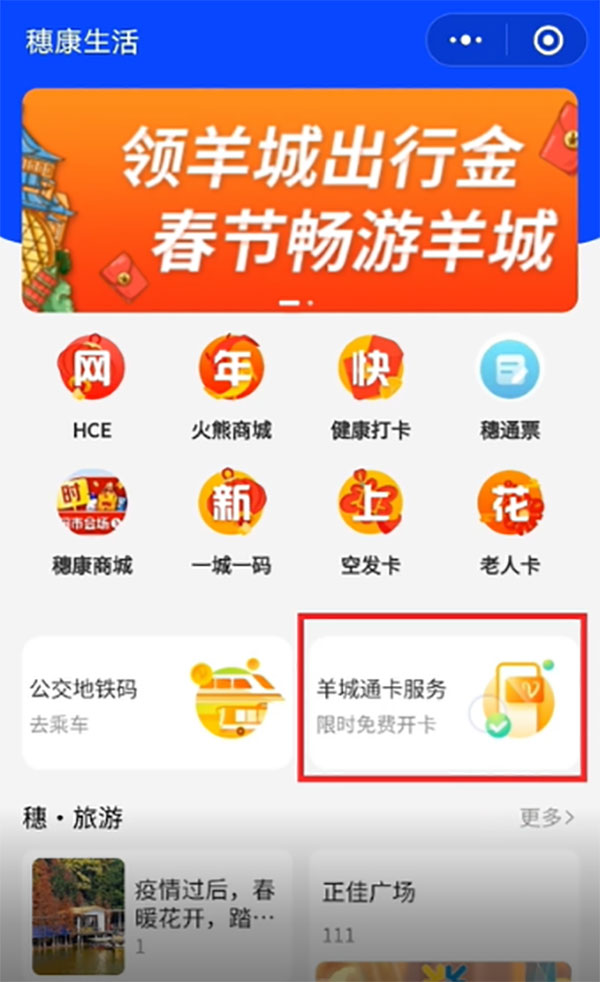 ?。ㄒ唬┦褂镁哂蠳FC功能的安卓手机,并打开NFC功能,微信搜索“羊城通岭南生活”小程序进入,点击“羊城通卡服务”。